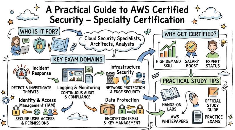 This certification is intended for individuals who have a security-focused role and at least two years of hands-on experience in the AWS environment. It is ideal for Security Engineers, Cloud Architects, and DevOps professionals.